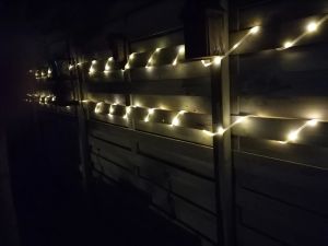 Aan deze lichtslinger zit geen plakrand. Deze kunt u in een boom, langs een looppad of onder een afdekkap bevestigen d.m.v. clips bijvoorbeeld.