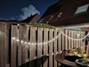 Het hangt helemaal af hoeveel zon en/of daglicht uren het zonnepaneel heeft ontvangen. Op een bewolkte dag brand de slinger minder lang dan op een zonnige dag. Bij een volledig opgeladen batterij brandt deze lamp tot 6 uur.