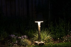 Mooie lamp, leuk design. Geeft sfeervol licht en gaat feller branden als je langsloopt. Ideaal. Zonder gedoe met bedrading mooie tuinverlichting. En "groene" energie! Voldoet ruimschoots aan de verwachtingen!