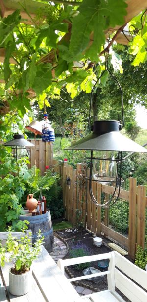 Hanglamp Harper voelt zich thuis in een tuin of andere buitenplaats met een landelijke of industriële uitstraling waar hij gegarandeerd de sfeer nog verder zal verhogen.