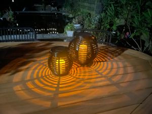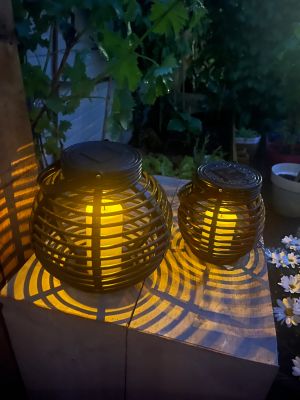 Ware sfeermakers zijn onze 'basket' lantaarns. Ze zijn werkelijk waar overal toepasbaar, want de lamp is uitgevoerd met een IP44 bescherming. Onder uw afdak, op uw terras, in de tuin, maar ook bijvoorbeeld binnen voor uw raam. De Basket lampen simuleren echt kaarslicht. Dat gebeurt door niet alleen de kleur van kaarslicht te benaderen (licht oranje), maar ook door de LED in de solar lamp te laten knipperen als ware een vlammetje. Een erg leuk effect van deze lamp. Met een lichtopbrengst van 12 Lumen verbruikt de lamp weinig vermogen waardoor deze tot 8 uur kan branden. Ook brandt de lamp alleen wanneer het donker is en laadt hij zichzelf op gedurende de dag.